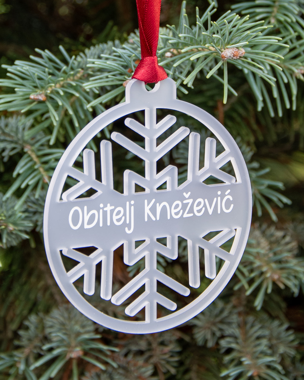 Akrilni ukras Pahuljica sadrži izrezani natpis po vašoj želji, a savršen je kao ukras za božićno drvce ili kao poklon.