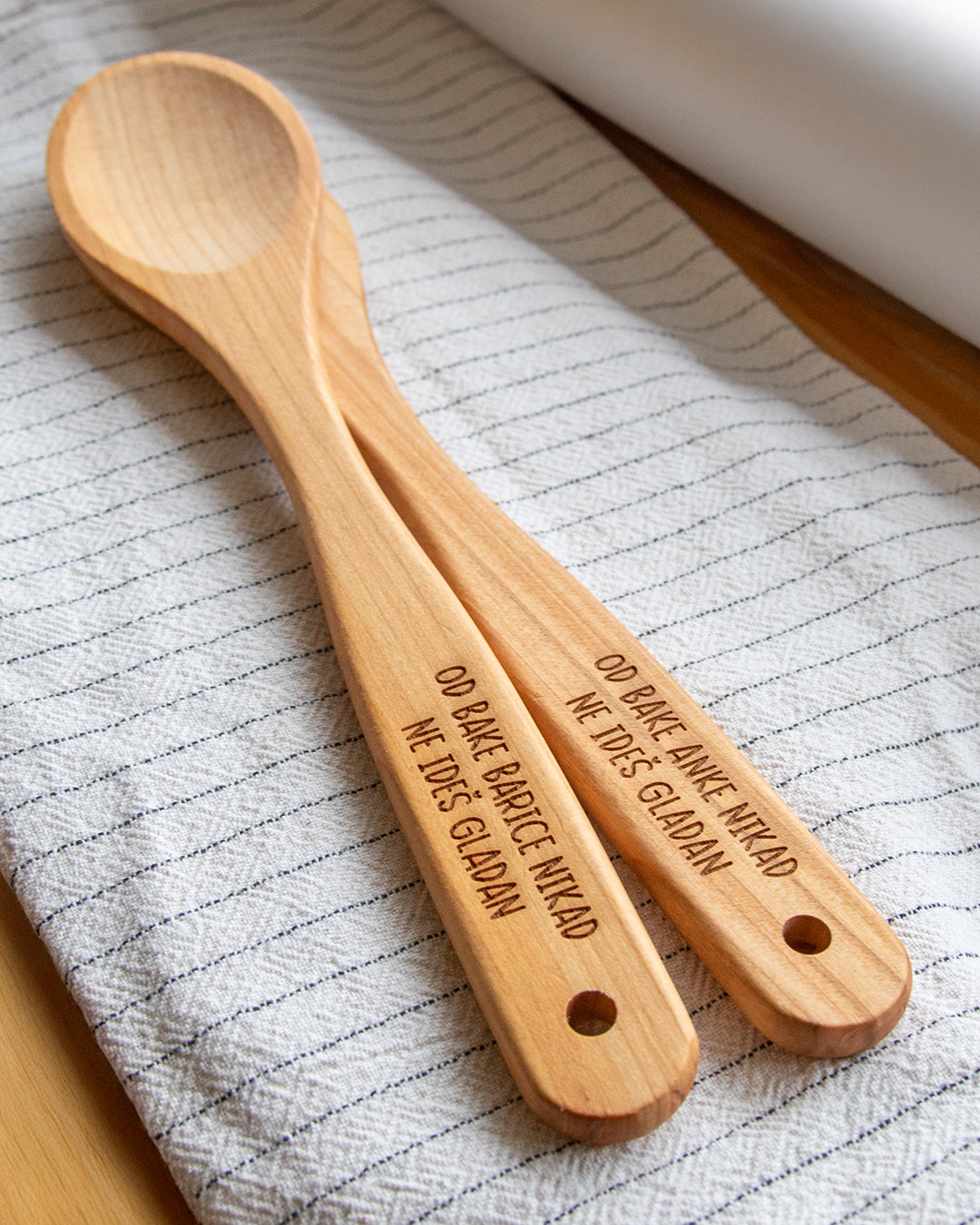 Kuhača je izrađena od kvalitetnog drva trešnje, koje je poznato po svojoj izdržljivosti i toploj nijansi, a praktična je za svakodnevnu upotrebu. Površina je premazana prirodnim uljem, što pruža dodatnu zaštitu.